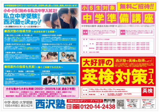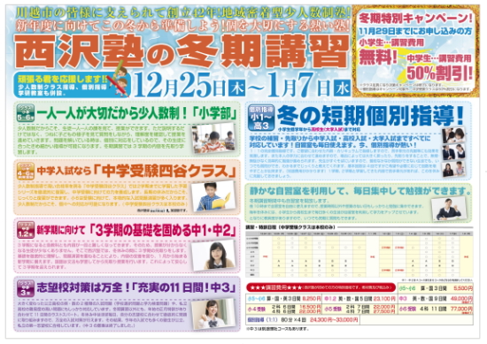 2023.11.20 西沢塾の冬期講習チラシアップいたしました。