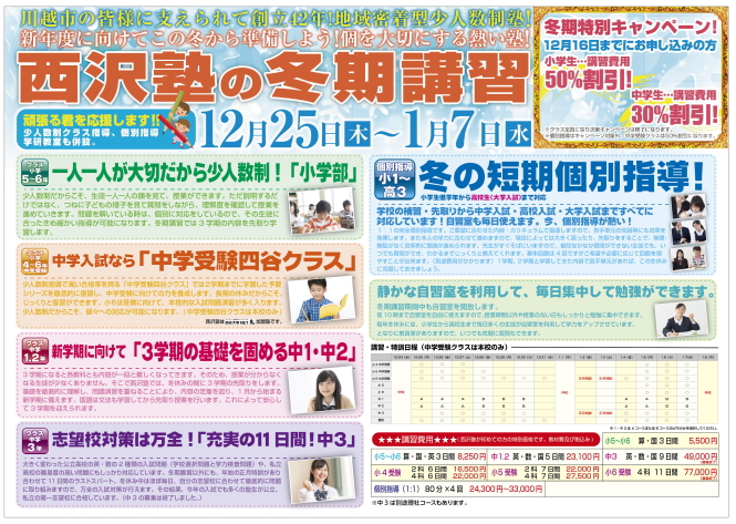 2023.11.20 西沢塾の冬期講習チラシアップいたしました。