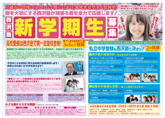 2023.11.20 西沢塾の冬期講習チラシアップいたしました。